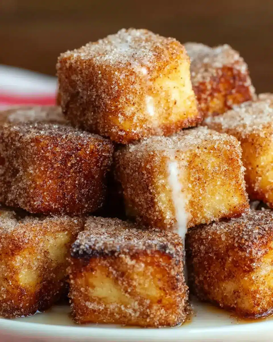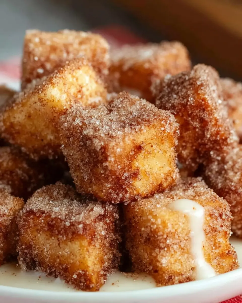 These churro bites are perfect for any gathering! Arrange them on a beautiful platter, dust with powdered sugar, and garnish with mint leaves for a pop of color. You can also provide guests with various dipping sauces like strawberry or white chocolate. For an interactive touch, set up a “create your own” station where attendees can flavor their bites with toppings such as crushed nuts, sprinkles, or even flavored syrups.