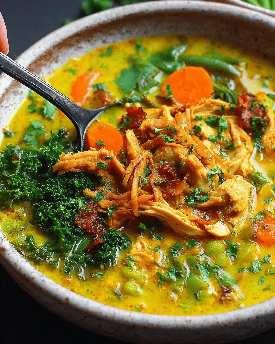 Filled with vibrant ingredients, this soup is abundant in vitamins A, C, and K, as well as essential minerals like potassium and magnesium. The turmeric not only lends a beautiful golden color but also adds anti-inflammatory benefits. Dive into a bowl for both taste and health!