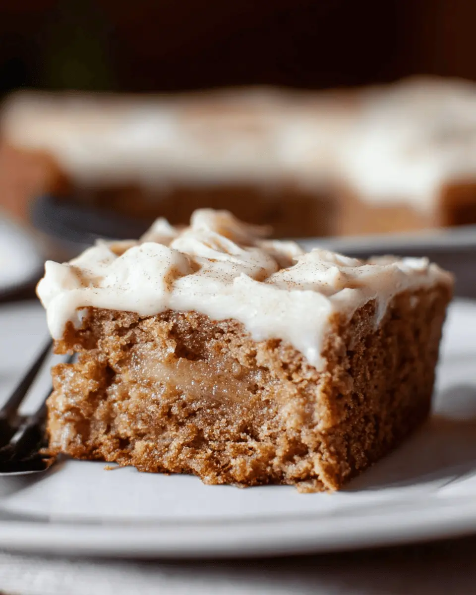 Once baked, let the cake cool in the pan for 10–15 minutes before slicing. Allowing it to cool completely will help you achieve cleaner edges when you cut your apple cinnamon sheet cake.
