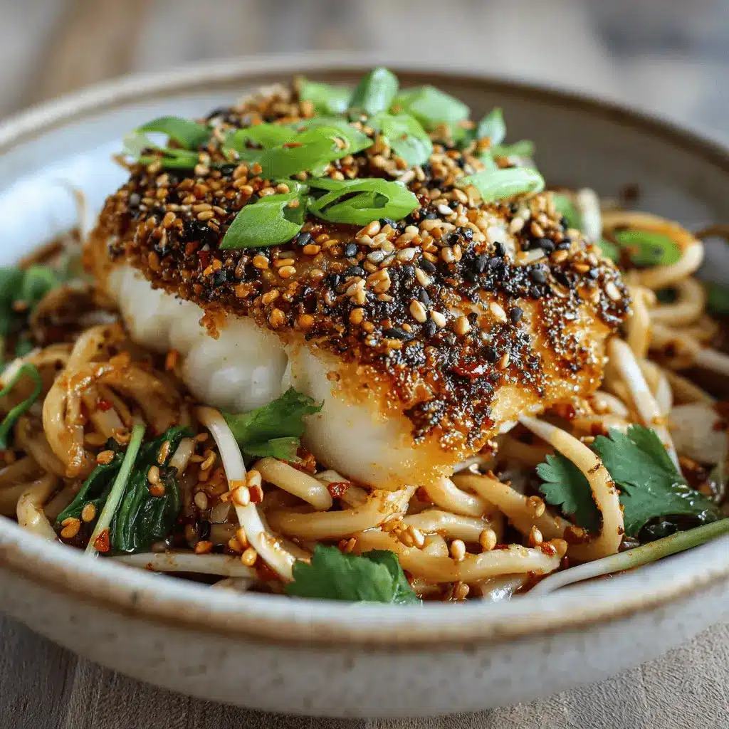 Asian Fusion Sesame-Crusted Cod with Aromatic Ginger Noodles