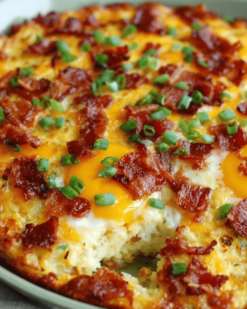 Slide your dish into the preheated oven and let it bake for about 40–45 minutes. Keep an eye on it; you want it golden and fluffy. The edges should be slightly crispy, while the center is set and perfect for serving. Once it's done, allow it to cool for a bit before digging in. Top with chopped green onions for that extra pop of flavor.
