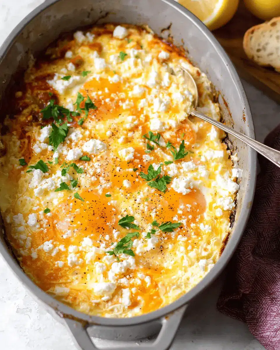 In summary, baked feta eggs are a deliciously easy dish perfect for breakfast or brunch. They combine creamy feta with fluffy eggs for a satisfying meal. Serve them with fresh herbs and pita pockets to elevate your experience. Treat yourself to this delightful recipe; you won't regret it!