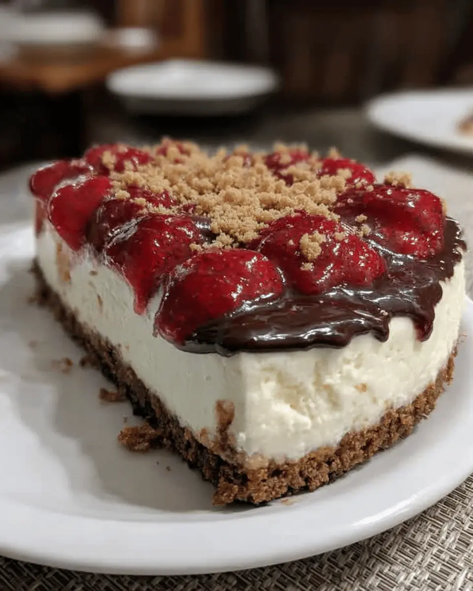 - Chocolate Drizzle: A generous drizzle of chocolate syrup adds a rich contrast to the creamy cheesecake.
