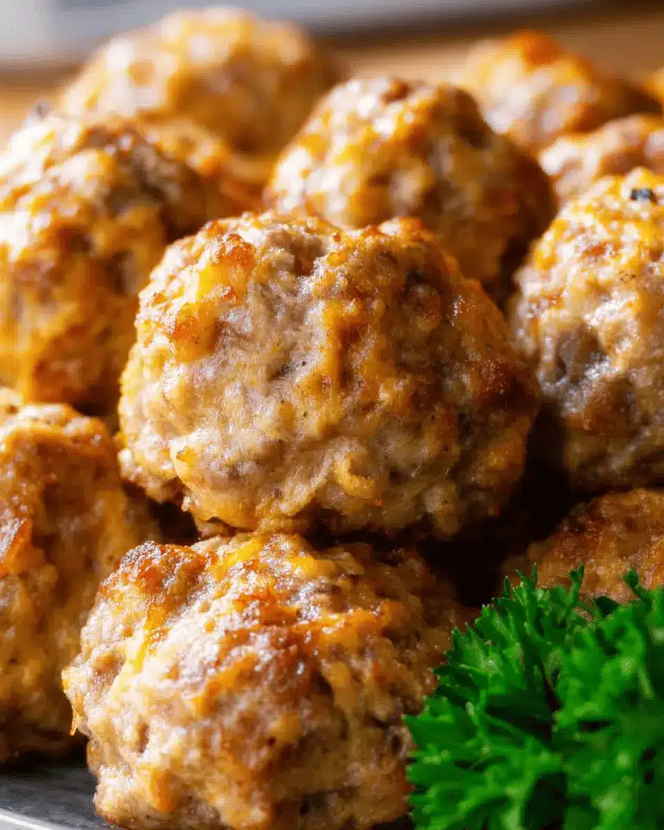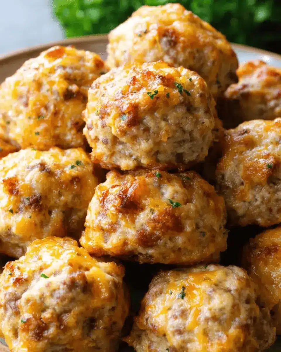 Bite-Sized Party Treats: For gatherings, serve these sausage balls on a platter alongside veggies and creamy dips for a vibrant spread.