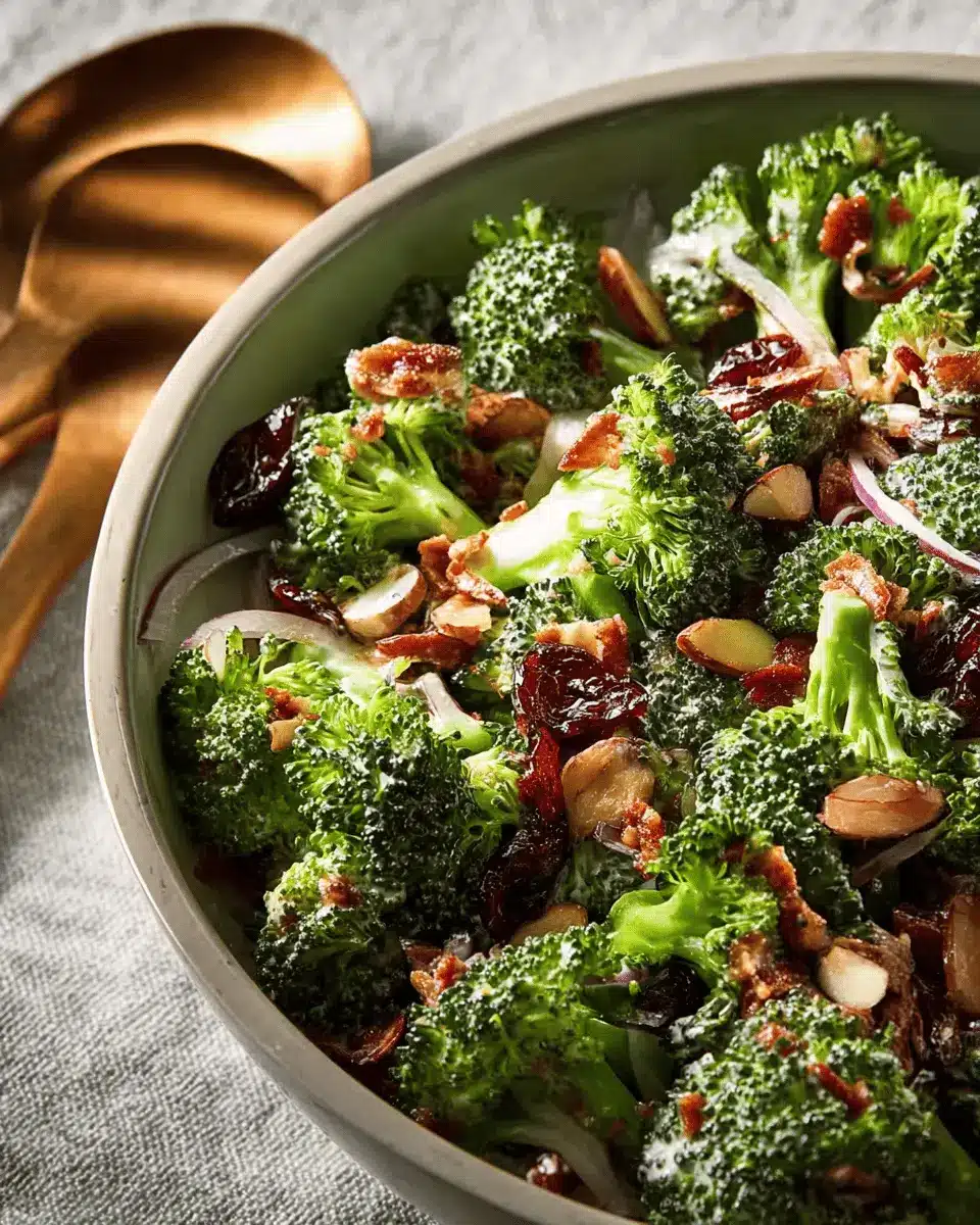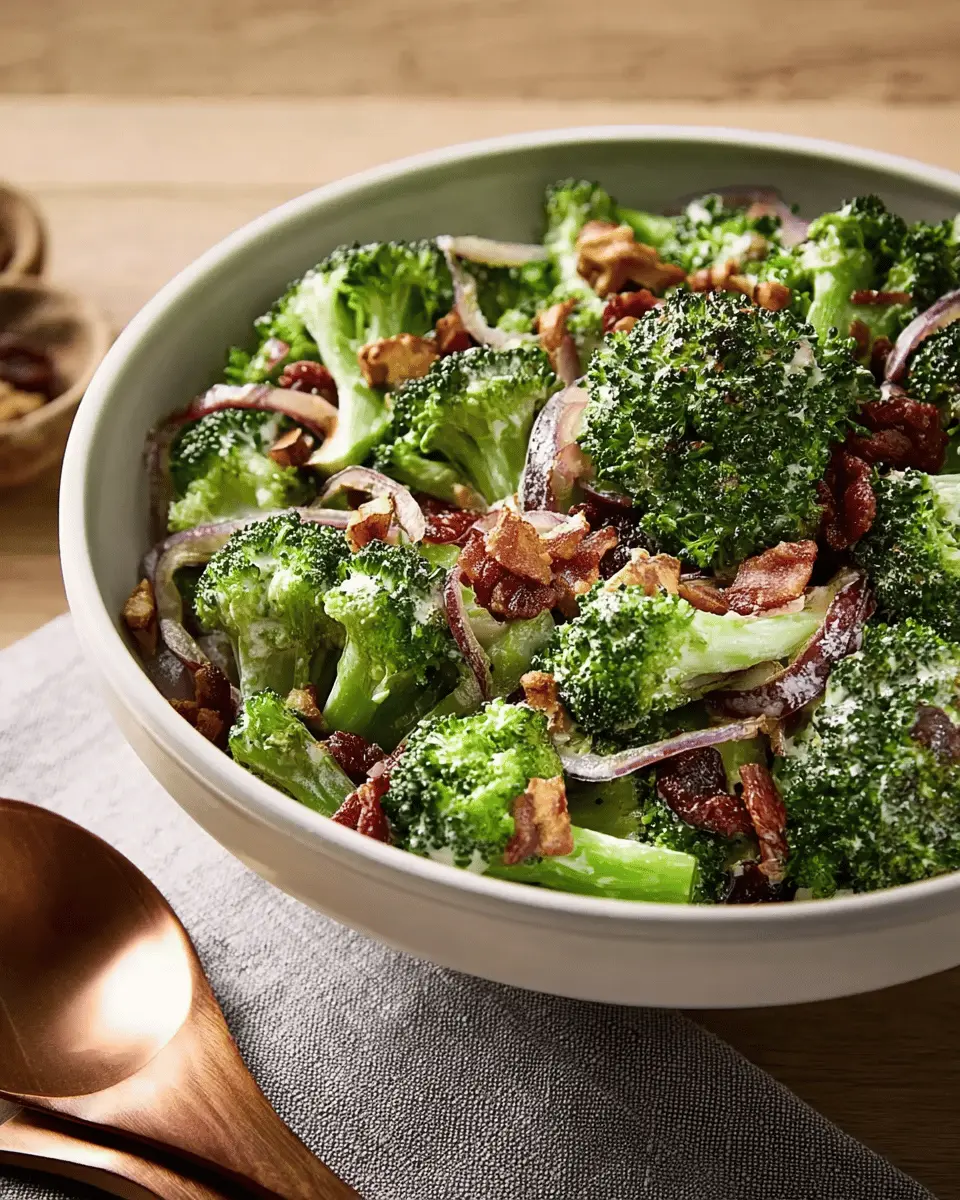 Absolutely! This broccoli salad is versatile, and you can easily swap out ingredients based on your preferences. Instead of turkey bacon, try using plant-based bacon for a vegetarian option. If you’re not a fan of raisins, dried cranberries or chopped apples can add a delightful sweetness. You can also switch the nuts based on what you have on hand—walnuts or pecans work well too!