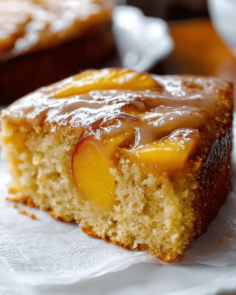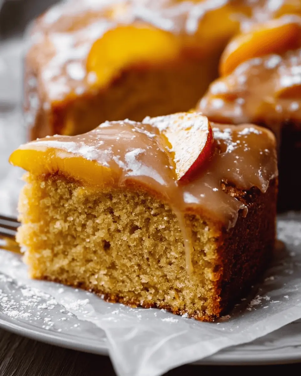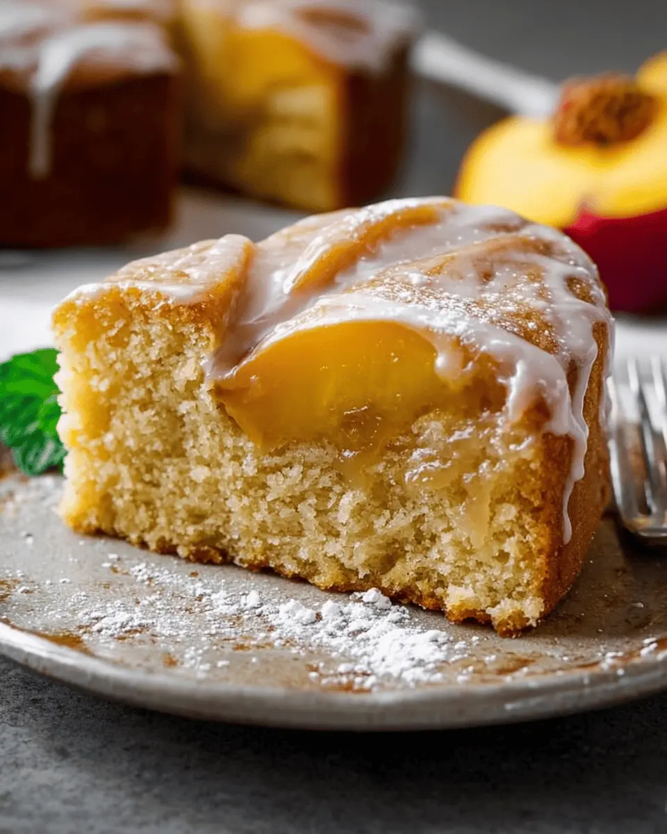 Top with Fresh Peaches: Slice up some fresh peaches and arrange them on top of each piece as a stunning garnish. This pairs wonderfully with the cake's moist peach flavor.