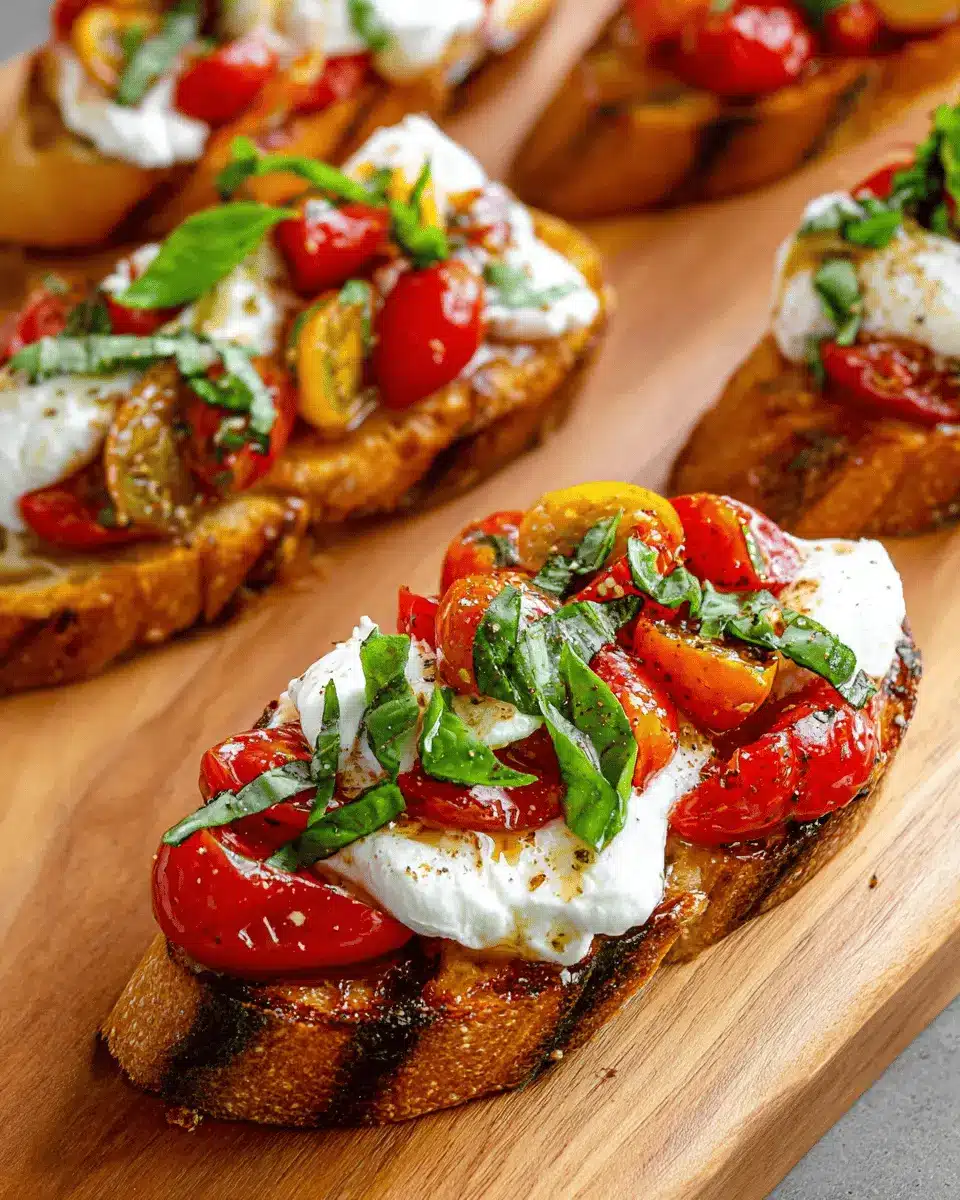 Burrata bruschetta is a delightful appetizer that elevates any gathering. With its creamy burrata, fresh tomatoes, and crunchy toast, it’s a winning combination. Remember to keep the components separate until serving for the ultimate crispness. Enjoy experimenting with toppings, and don’t forget the basil for that finishing touch!