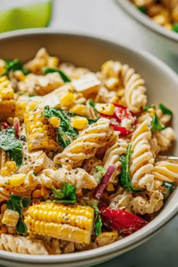 High Protein Street Corn Pasta Salad with Turkey Bacon Twist