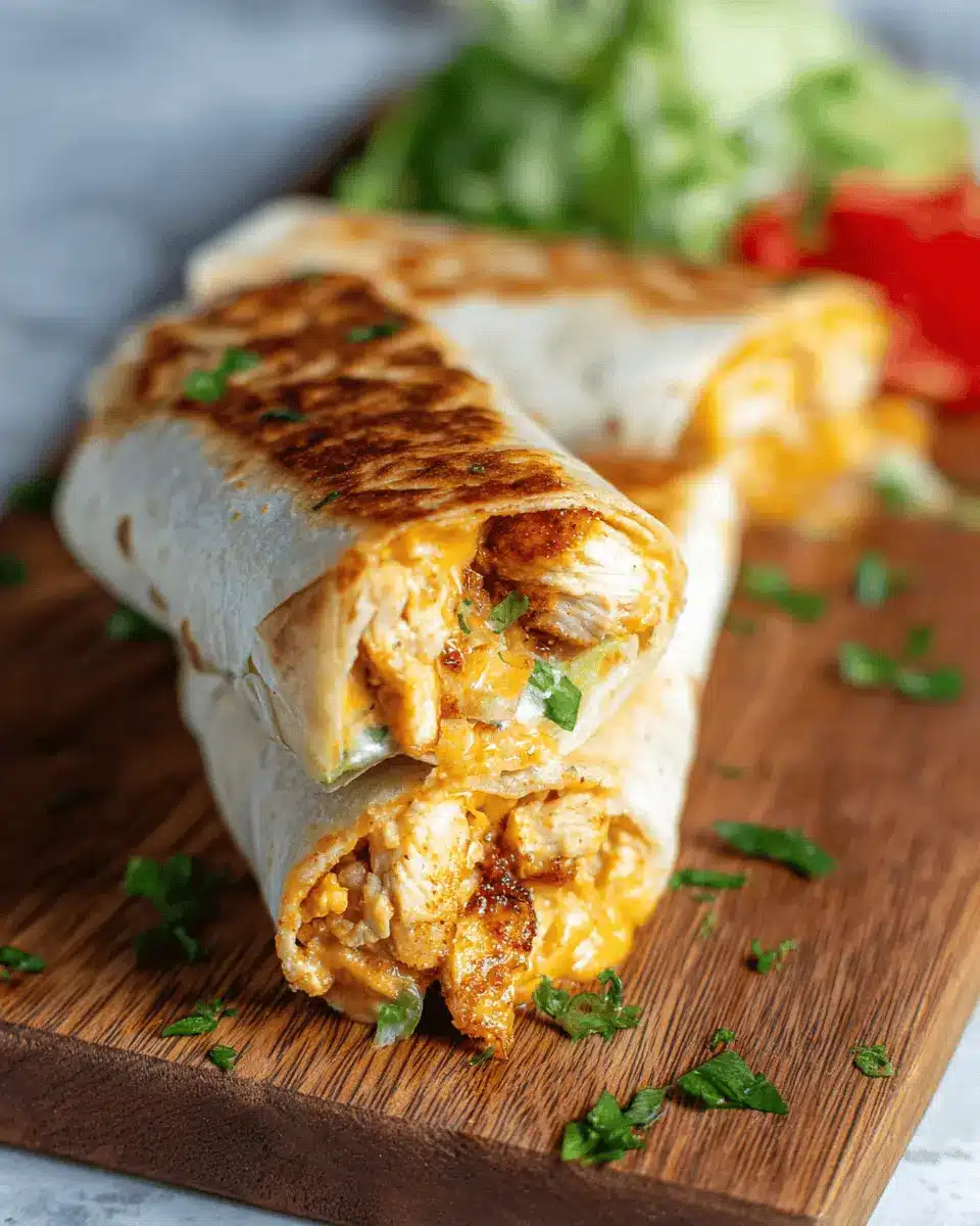 Don’t underestimate the power of garnishes! A sprinkle of fresh cilantro or parsley adds a burst of freshness, while sliced jalapeños can introduce a spicy kick. For a creamy element, a dollop of sour cream or guacamole on the side can enhance every bite of your Cheesy Garlic Chicken Wraps. You might also drizzle a bit of homemade salsa or hot sauce for that extra oomph. These simple additions can take your dish from delicious to spectacular!