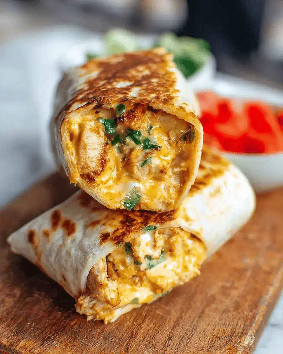 Spicy Cheesy Garlic Chicken Wraps