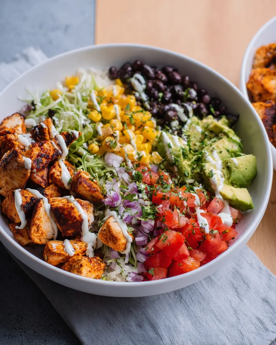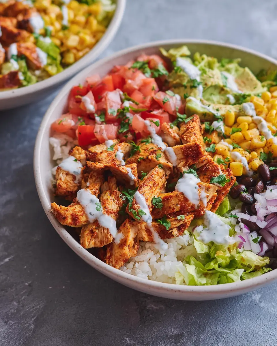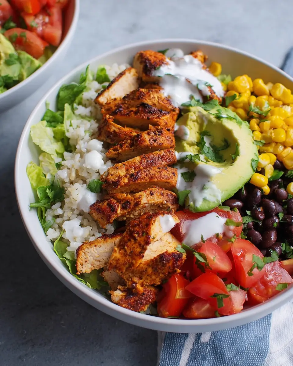 For a nutritious twist, try a veggie-loaded Chicken Burrito Bowl. Start by incorporating a medley of colorful vegetables like bell peppers, zucchini, and even roasted sweet potatoes. Enjoy additional crunch with fresh radishes or sliced cucumbers. To amp up the flavor, consider adding a dollop of guacamole or a sprinkle of feta cheese for that delightful creaminess. You could also use quinoa or cauliflower rice instead of traditional cilantro lime rice for a lighter option.