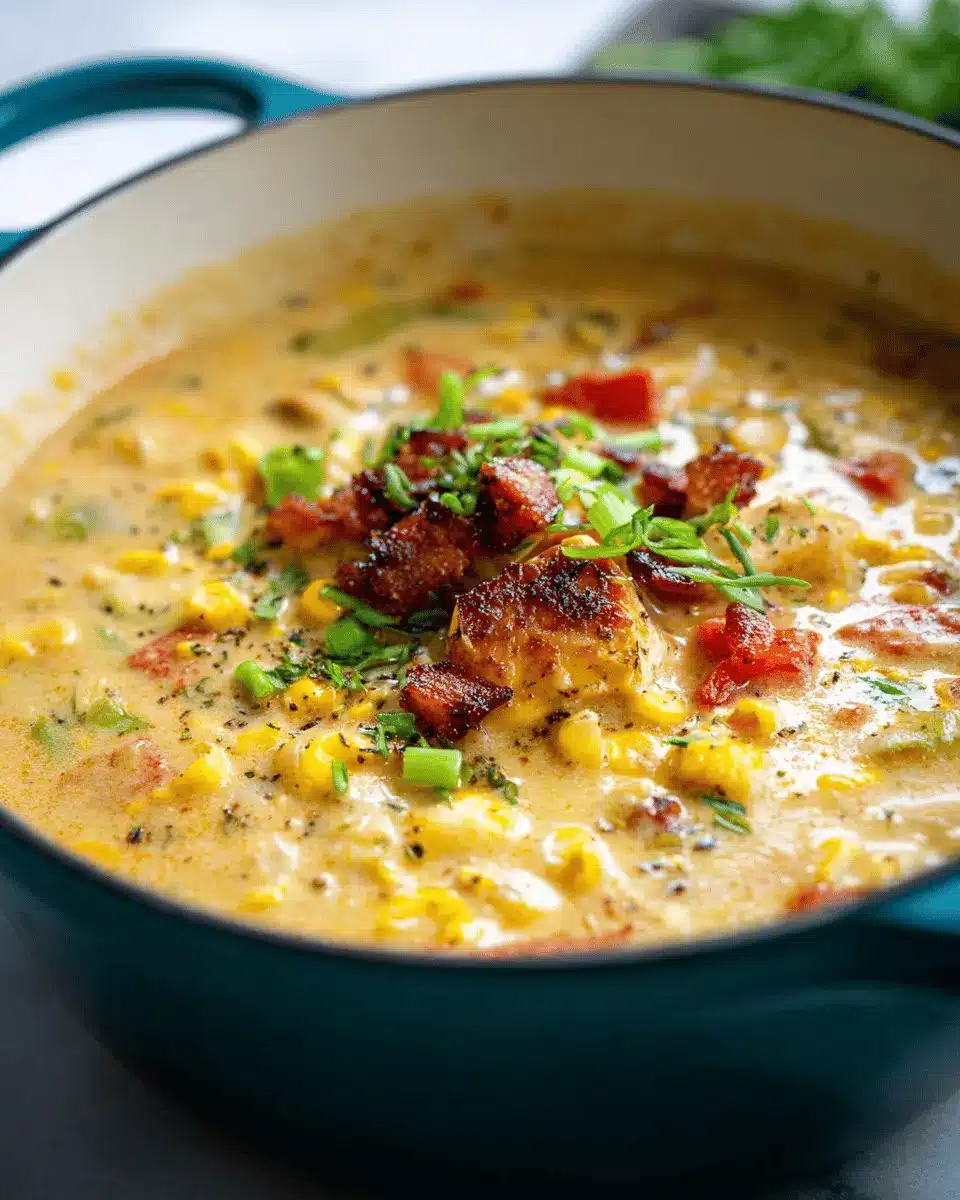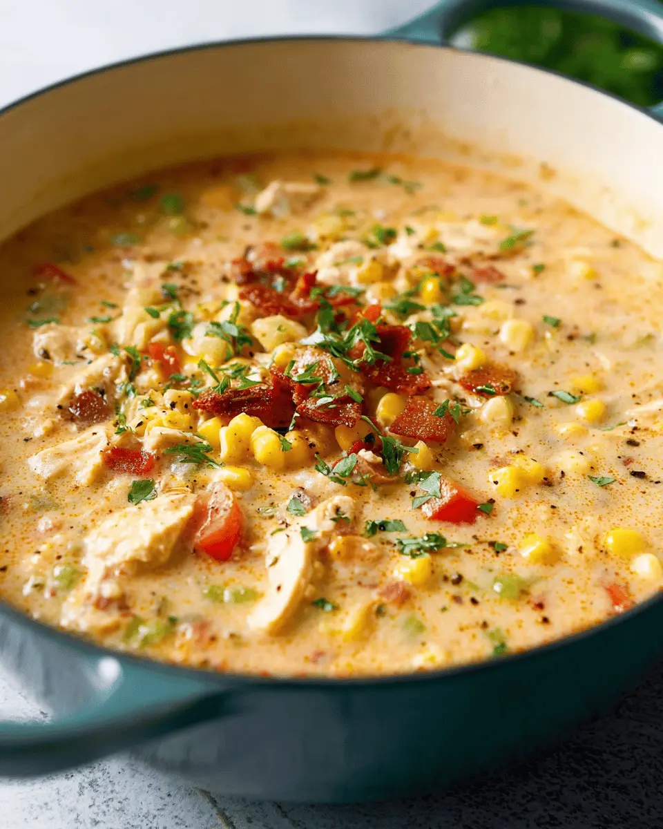 Chicken Corn Chowder: Creamy Comfort with Turkey Bacon Delight