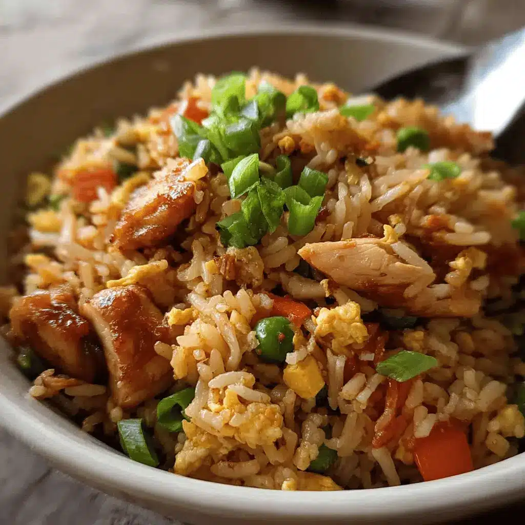 If you’re looking to heat things up, try spicy chicken fried rice! This version incorporates chili paste or sriracha to provide a kick that perfectly complements the tender chicken and veggies. For an extra layer of flavor, toss in some fresh jalapeños or red pepper flakes. Don’t forget to serve it with a sprinkle of green onions and a squeeze of lime for that zesty finish. Pairing your dish with a refreshing drink like iced tea can balance the heat beautifully.