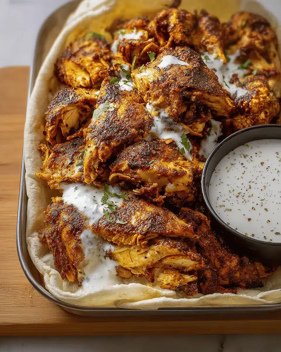 And let’s not forget the garlic white sauce! With creamy yogurt and a hint of lemon, this sauce offers a delightful tang that complements the spices beautifully. It’s the perfect pairing your taste buds have been craving. Want to explore this culinary adventure in your own kitchen? Let’s dive into the recipe for a deliciously flavorful meal that’s guaranteed to impress!