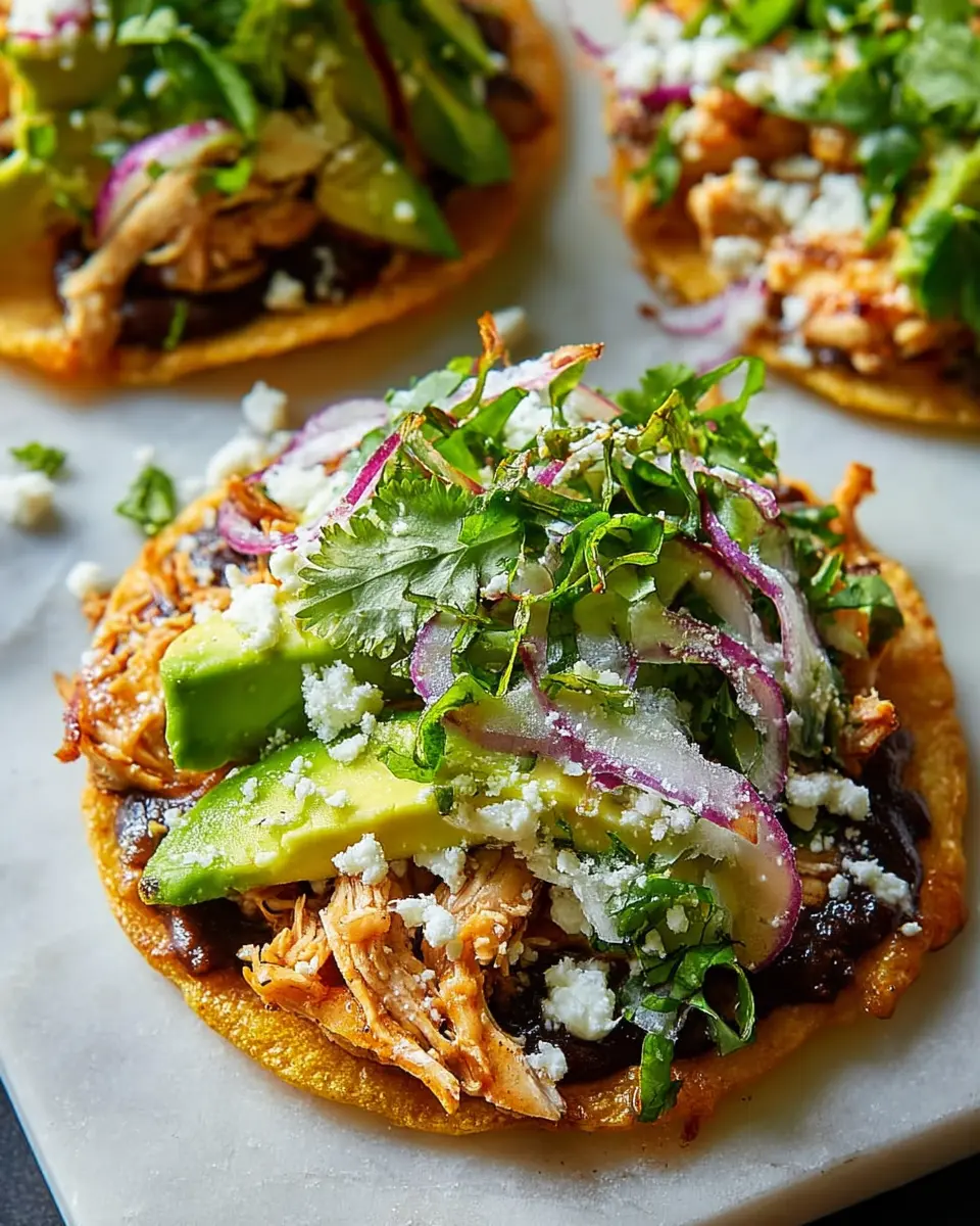 In summary, Chicken Tostadas offer a delightful blend of textures and flavors that are sure to impress. This dish not only brings joy to your taste buds but is also versatile enough for parties or casual weeknight dinners. Explore this delicious recipe and bring a taste of Mexico to your kitchen!