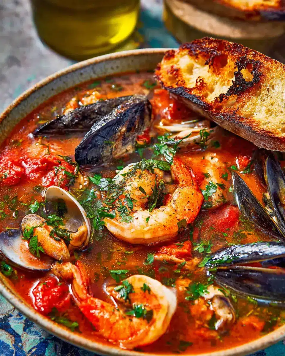 Go beyond the bowl: Serve your cioppino in unique bowls or even a bread bowl for a fun twist. Consider a side salad with a lemon vinaigrette to brighten the meal further.