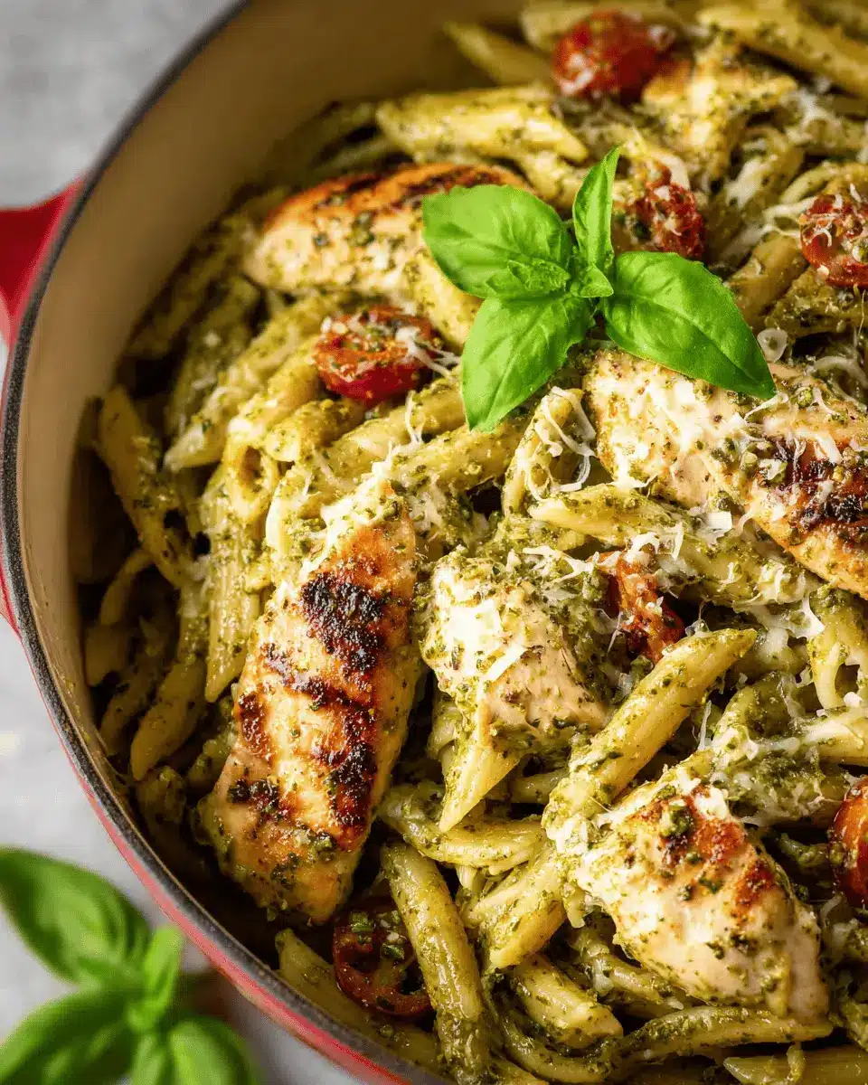 Whip up this delightful creamy chicken pesto pasta in about 20 minutes. It’s a quick meal that doesn’t skimp on flavor!