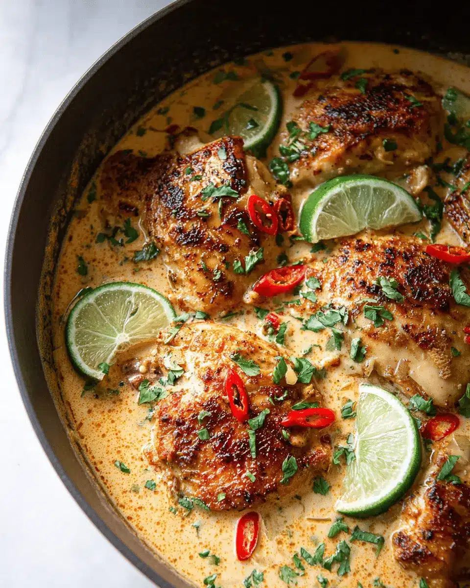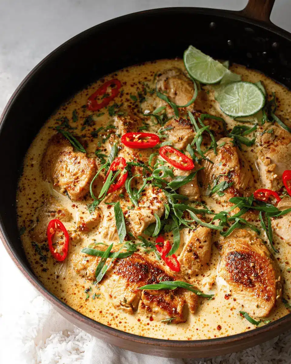 A sprinkle of freshly chopped cilantro adds both color and freshness, making your dish visually appealing. Bright red chili flakes not only introduce a pop of color but also hint at the dish’s subtle heat. A generous squeeze of lime just before serving brightens up the flavors, ensuring your creamy coconut milk chicken recipe is as delicious to look at as it is to eat!