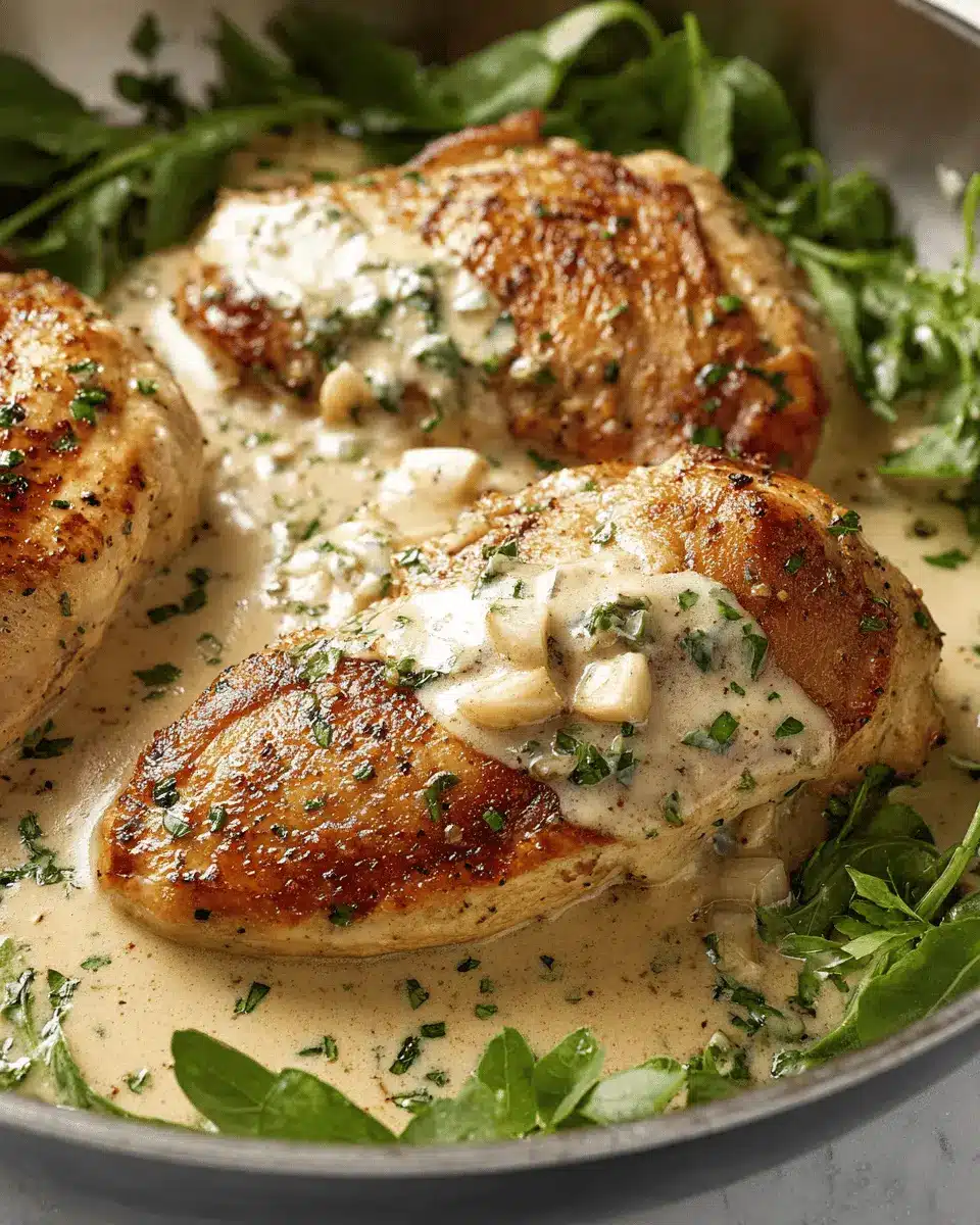 Creamy Garlic Chicken with Spinach and Mushrooms