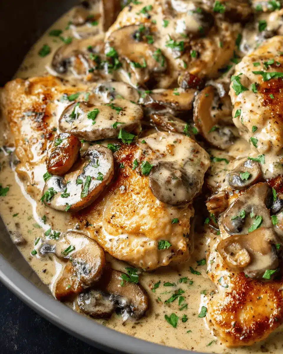 In summary, Creamy Mushroom Chicken is a delightful dish that brings together tender chicken and rich, savory mushrooms in a luscious cream sauce. Perfect for weeknight dinners or special occasions, this recipe is sure to impress. Enjoy each creamy bite and share it with loved ones for a memorable meal.