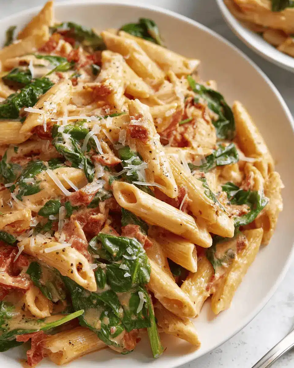 This creamy tomato and spinach pasta is not just a dish, but a delightful experience that combines flavors and textures perfectly. Whether you’re preparing a weeknight dinner or showcasing your cooking skills to friends, this recipe promises satisfaction for everyone at the table. Enjoy!
