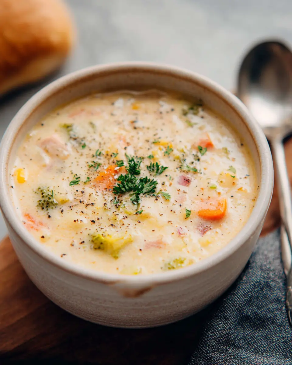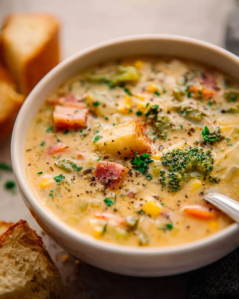 Protein Boost: Consider adding cooked chicken ham or crispy turkey bacon for a protein boost that complements the soup's creaminess.