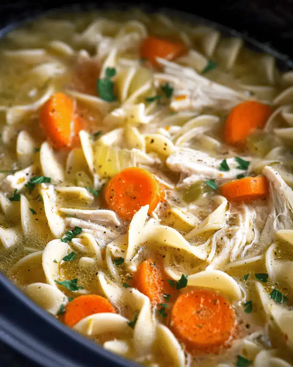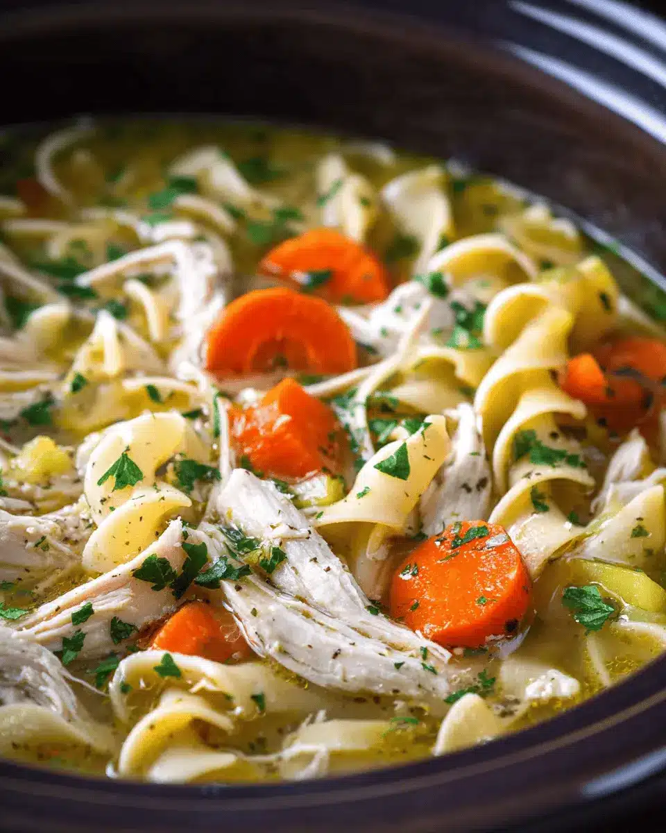 For the best Crock-Pot Chicken Noodle Soup, achieving the perfect texture is key. Make sure to shred your chicken just before serving to keep it juicy and tender, avoiding overcooking in the liquid. Also, add the wide egg noodles in the final 30 minutes of cooking; this will ensure they remain al dente and not mushy. If you prefer a thicker soup, consider adding a cornstarch slurry just before serving.