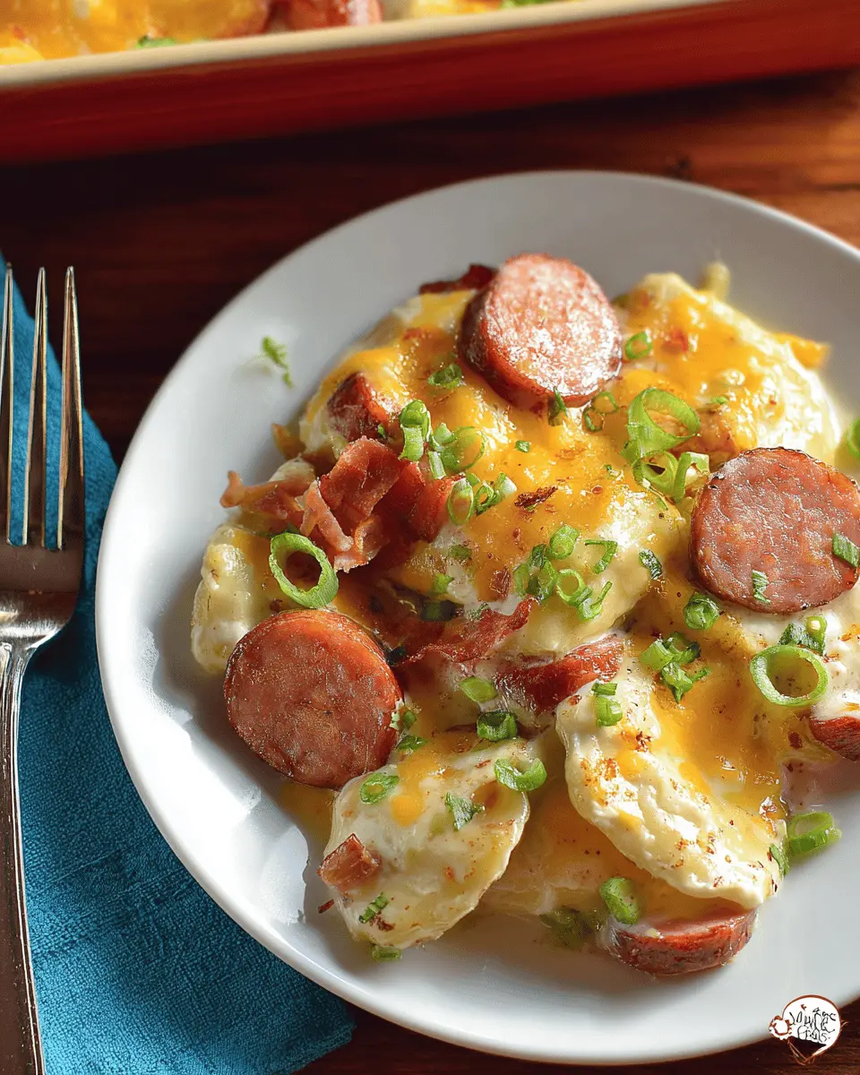 One of the best things about this Crock Pot Pierogi and Kielbasa Casserole is its versatility! If you’re looking to switch things up, consider using Turkey Bacon for a lighter touch or Chicken Ham for a slightly different flavor profile. You could also try using shredded beef for a heartier version if you’re craving something robust. Experimenting with different proteins keeps the dish exciting and caters to various dietary preferences.
