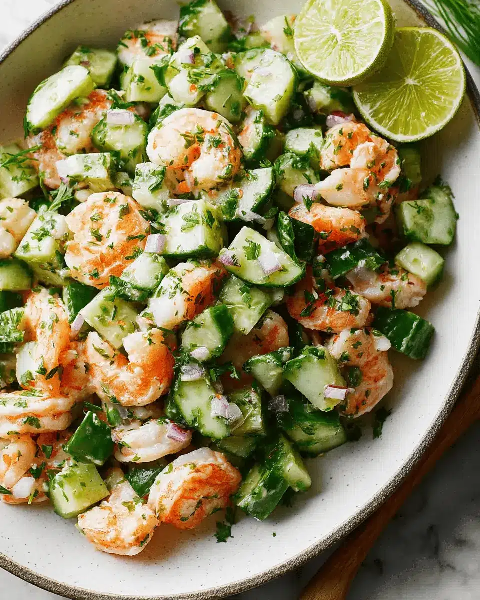 Absolutely! This Cucumber Shrimp Salad can be prepared a few hours in advance, which makes it perfect for meal prep or get-togethers. Just keep the dressing separate until you’re ready to serve to maintain that fresh crunch of the cucumbers.
