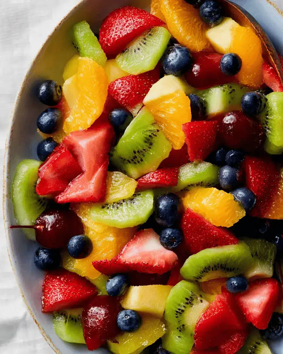 When selecting your fruits, opt for those that are in season. In-season fruits are not only more flavorful but often more affordable! Did you know that incorporating a variety of colors adds essential nutrients? This salad is as beautiful as it is nutritious.