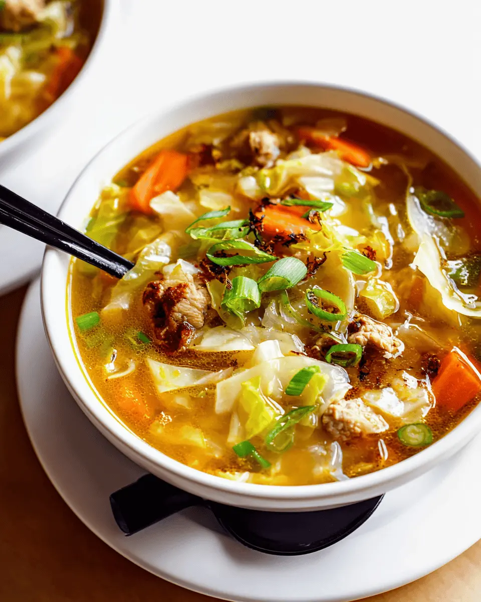 You’ll find about 15-20 grams of carbohydrates in each serving. The vegetables in this soup, such as cabbage and carrots, contribute essential fibers and nutrients to complement your meal.