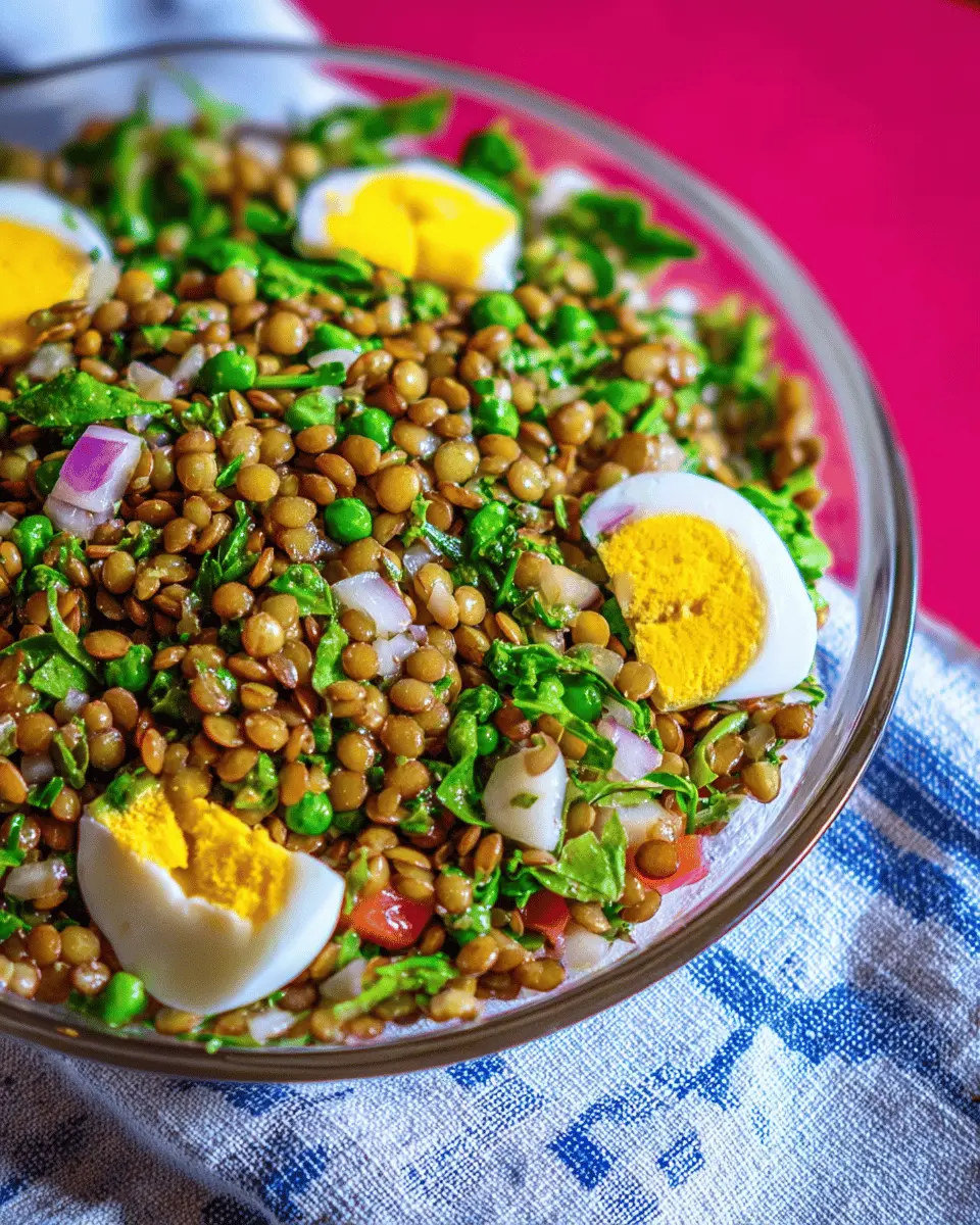 These ingredients not only make the salad nutritious but also vibrantly colorful and appealing! If you're looking for a protein boost, consider adding some turkey bacon or chicken ham. This salad is incredibly versatile and an excellent option for meal prep or a light lunch. Want to learn more about the health benefits of lentils? Check out Healthline for insights. Enjoy your cooking adventure!