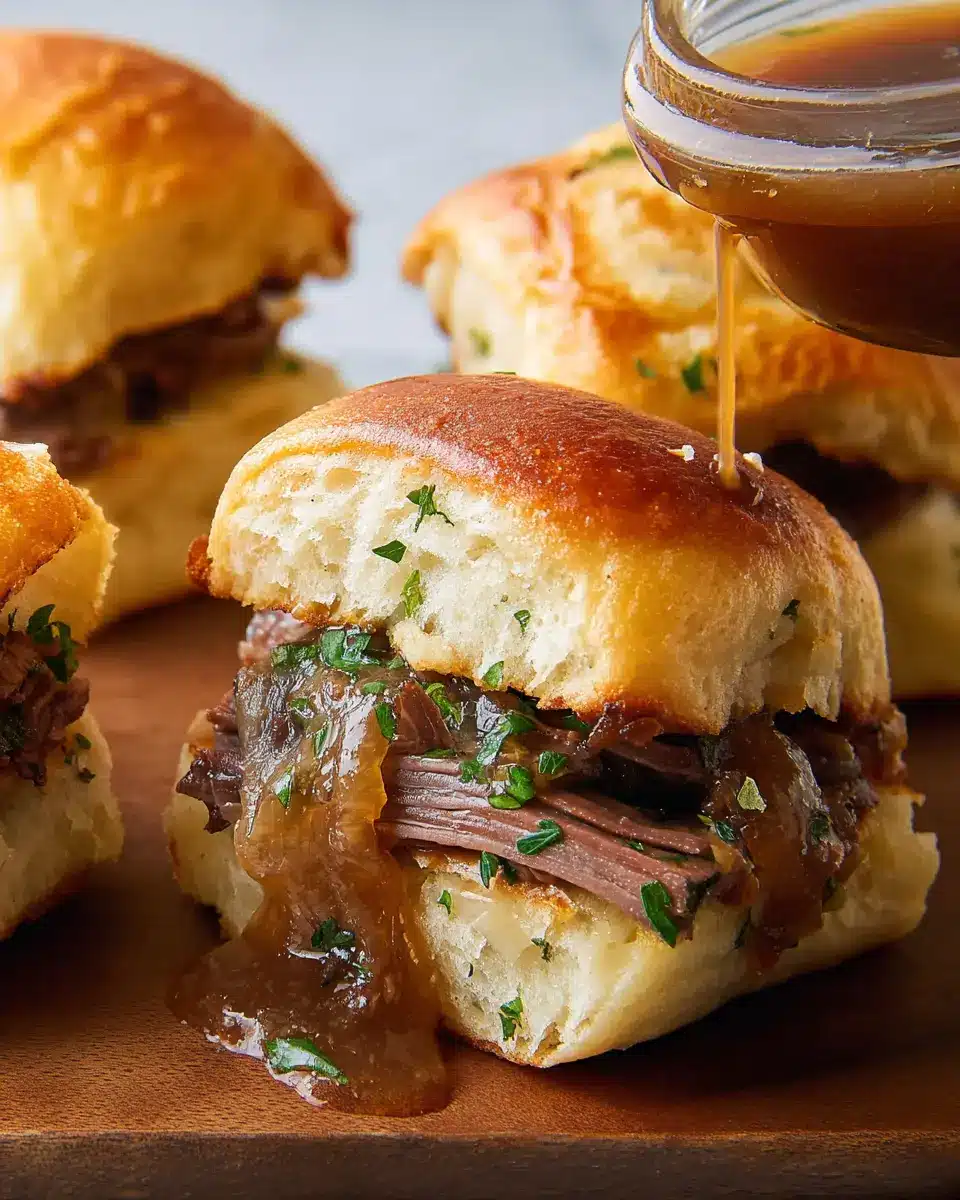 With these simple steps, your French Dip Sliders are ready to impress your friends and family. Serve them alongside the warm au jus for dipping, and watch as their flavors steal the show!