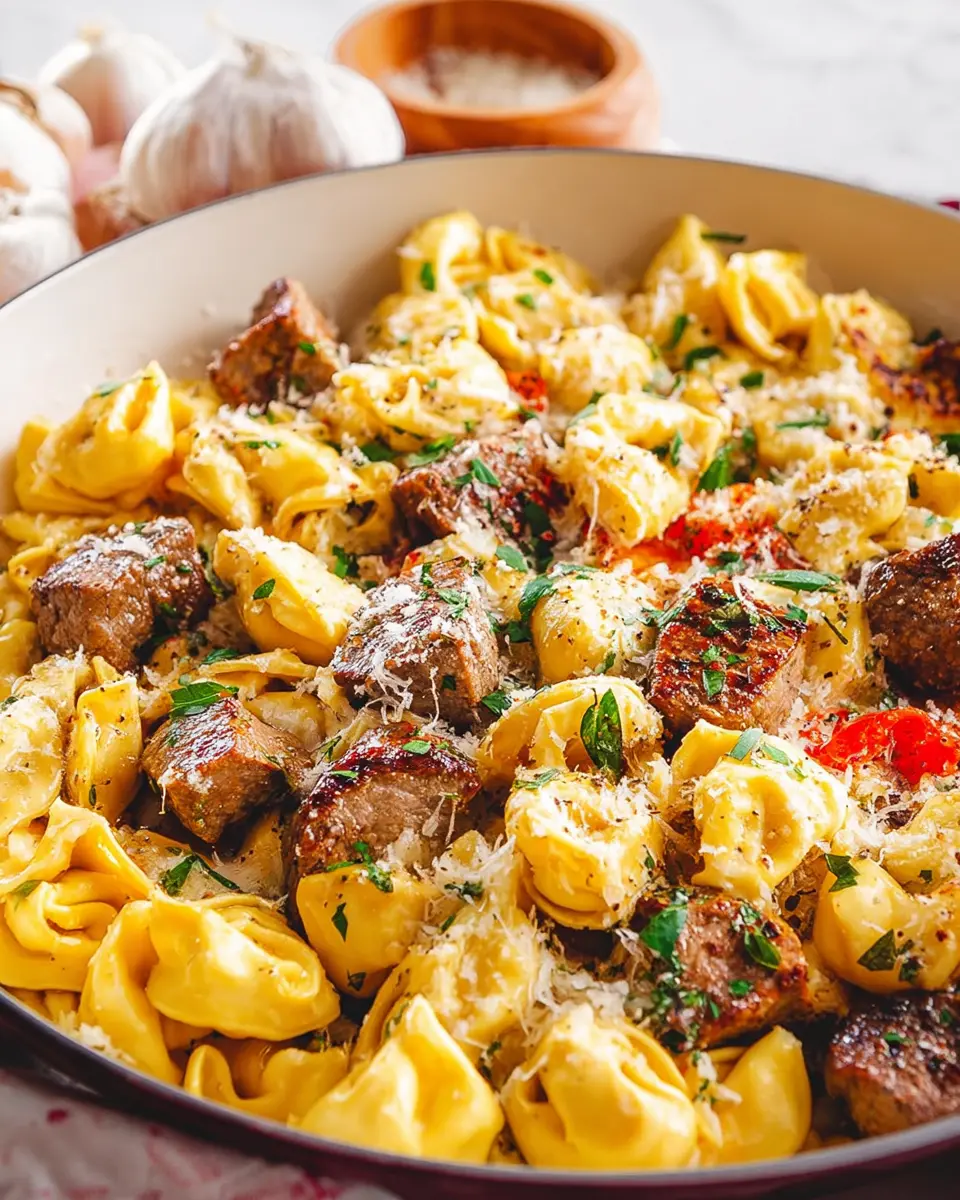 Step-by-Step Preparation of Garlic Parmesan Steak Tortellini