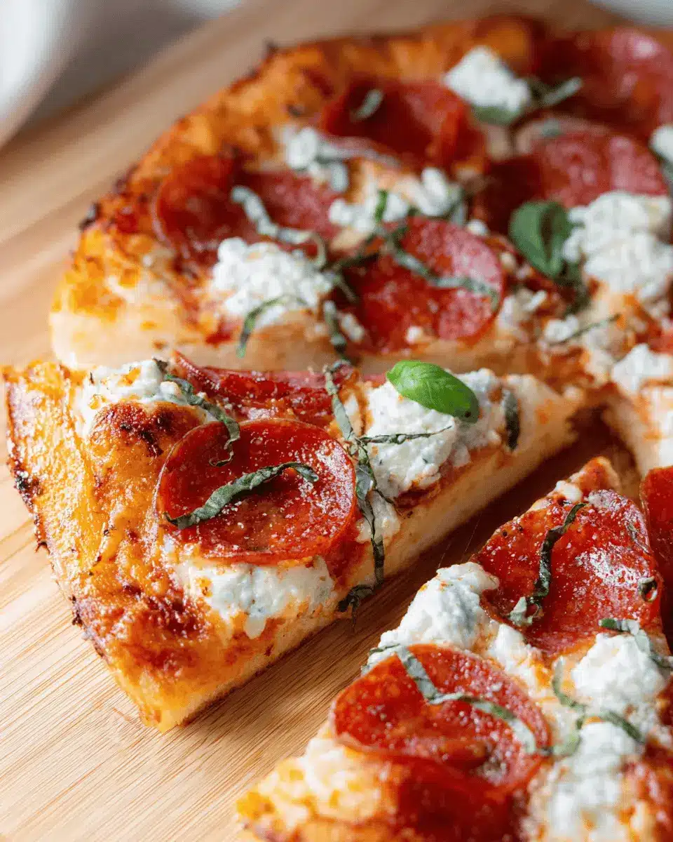Making this pizza is worth the effort because of the incredible flavors you’ll experience. The sweet heat of hot honey pairs beautifully with spicy pepperoni and creamy ricotta, creating a unique taste sensation. Plus, it’s customizable—add your favorite veggies or alternative meats like turkey bacon or chicken ham if you’d like!