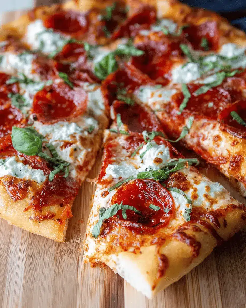 Elevate your hot honey pepperoni ricotta pizza by experimenting with toppings! Consider adding sliced olives, jalapeños, or even a drizzle of balsamic reduction for an additional flavor twist. Fresh herbs like oregano or thyme can also enhance the aroma and taste. Your pizza night can be a fun culinary adventure!