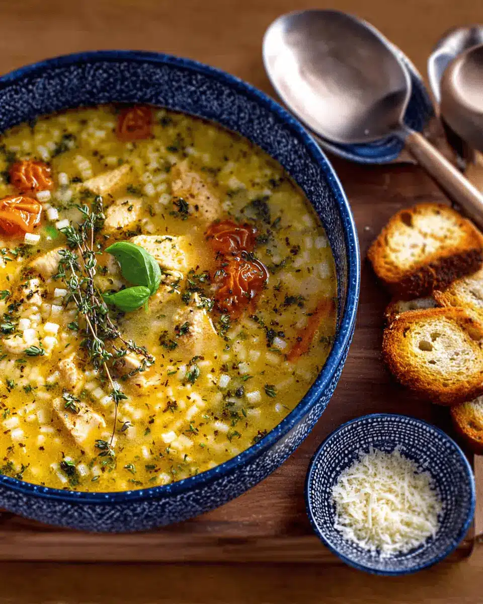 Elevate your Italian Chicken Pastina Soup with delightful toppings that bring fresh flavors and texture. Consider adding: