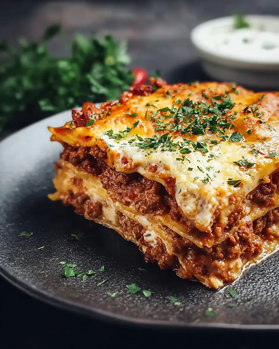 Pair it with a Non-Alcoholic Beverage: Try serving with sparkling water infused with lemon or herb tea for a refreshing contrast to the warm, cheesy layers.