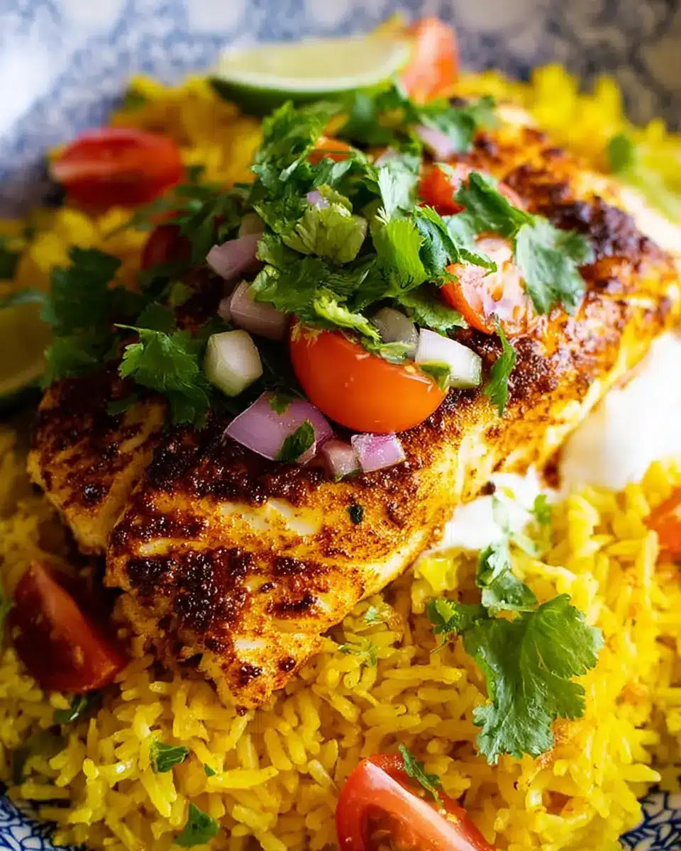 Masala Baked Fish with Turmeric Rice