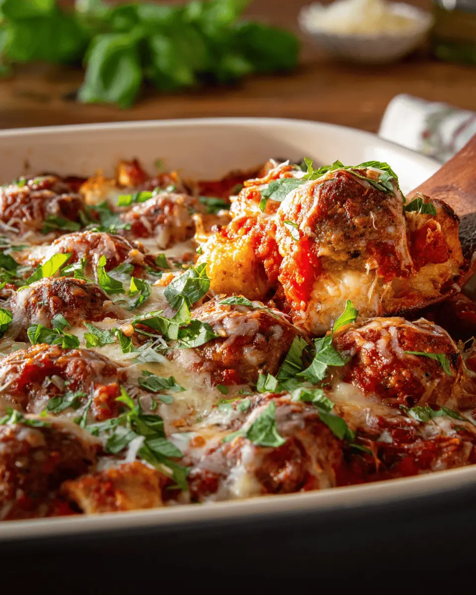 For a lighter twist on the classic meatball casserole, try making it with chicken! Substitute the beef and sausage with ground chicken, which not only reduces the fat content but also allows the flavors of fresh herbs to shine through. Incorporating feta cheese and spinach adds a delightful Mediterranean flair. You can even top it off with a zesty yogurt sauce for extra creaminess!