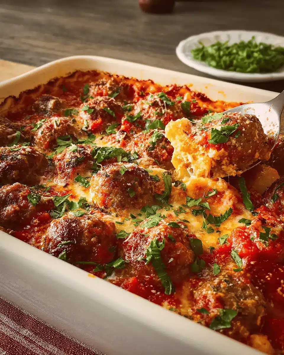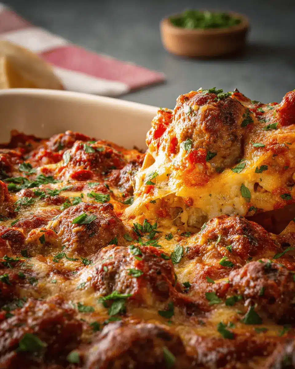 Presenting your meatball casserole with flair can elevate your dining experience. Try serving it directly from the baking dish for a rustic touch, or portion it into individual ramekins for a more elegant look. Garnish with fresh parsley or basil for a pop of color. Consider pairing it with grilled bread or garlic breadsticks to scoop up every delicious bite. For a fun twist, serve it as a “casserole bar” where guests can layer their dish with additional toppings like crushed red pepper flakes, extra cheese, or fresh herbs.