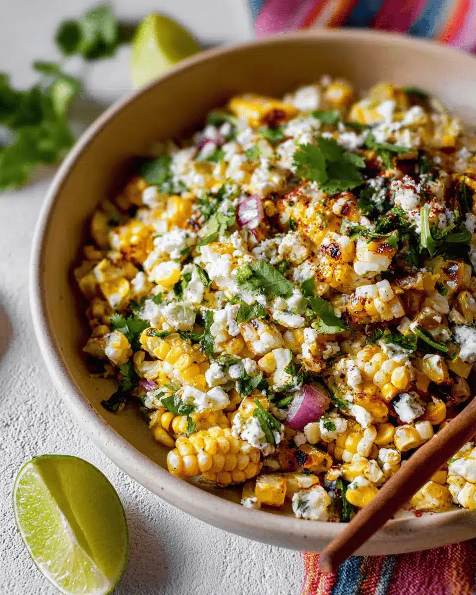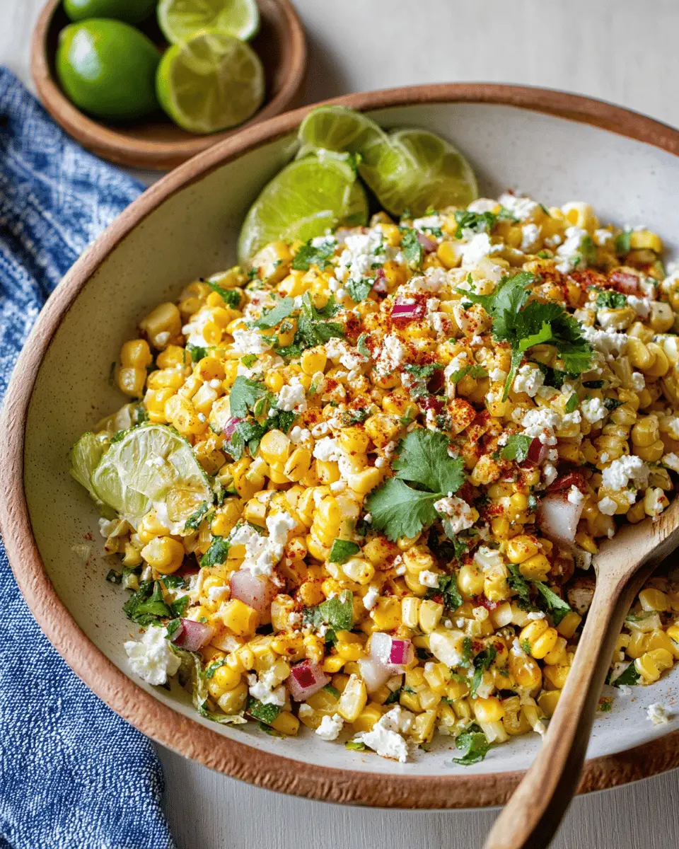 In summary, Mexican street corn salad is a delightful fusion of flavors that brings a taste of the streets into your kitchen. Whether served as a side or a stand-alone dish, its vibrant ingredients cater to all taste buds. Enjoy this refreshing, easy recipe at your next gathering or as a lively weeknight treat.