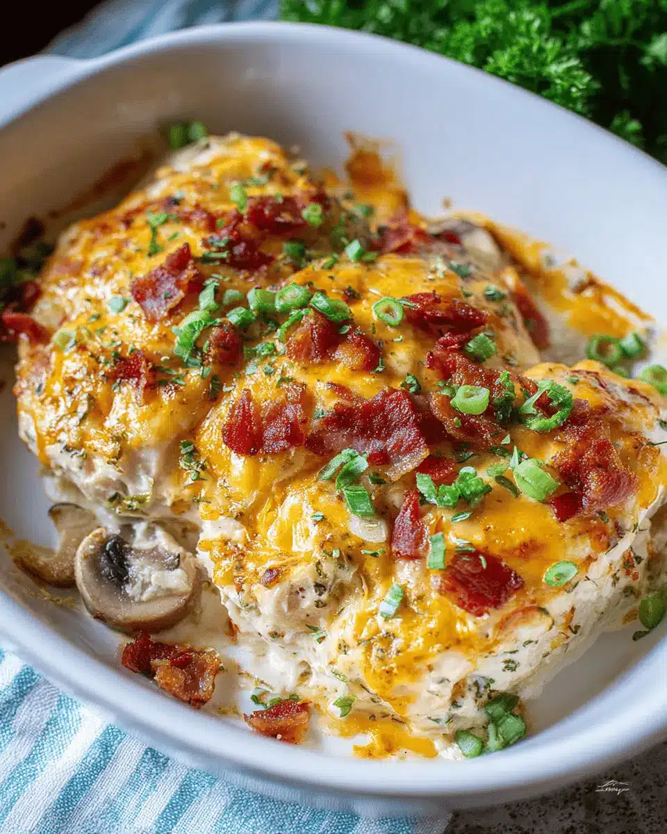 The Million Dollar Chicken Bake is your go-to recipe for a hearty, satisfying meal that the whole family will love. With tender chicken, creamy cheese, and that delightful crunch from turkey bacon, it brings together comfort and convenience in one dish. Perfect for a busy weeknight dinner or a weekend gathering, this recipe is sure to become a favorite! Don't forget to share your creation on Instagram, tagging @easyfamilyrecipes, and celebrate your culinary triumph with fellow food lovers!