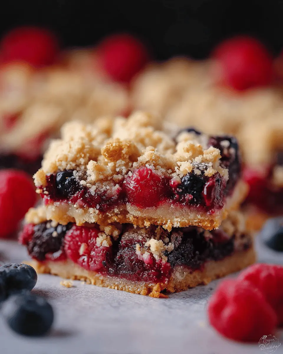 In summary, mixed berry crumble bars are a delightful treat that combines tart berry flavors with a buttery, crumbly topping. Perfect for any occasion, they are simple to make and even easier to enjoy. So grab your fresh berries and treat yourself to these delicious bars!