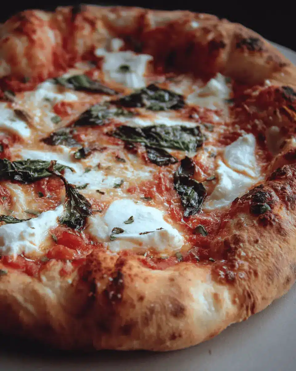 Neapolitan pizza dough is known for its soft, elastic texture and is mainly made with Tipo 00 flour, a finely milled Italian flour that gives it a unique bite. Unlike thicker crusts like New York-style pizza, Neapolitan dough is meant to be thin in the center with a puffy crust (cornicione), traditionally baked at high temperatures in a wood-fired oven. This method creates that beloved char and chewiness.