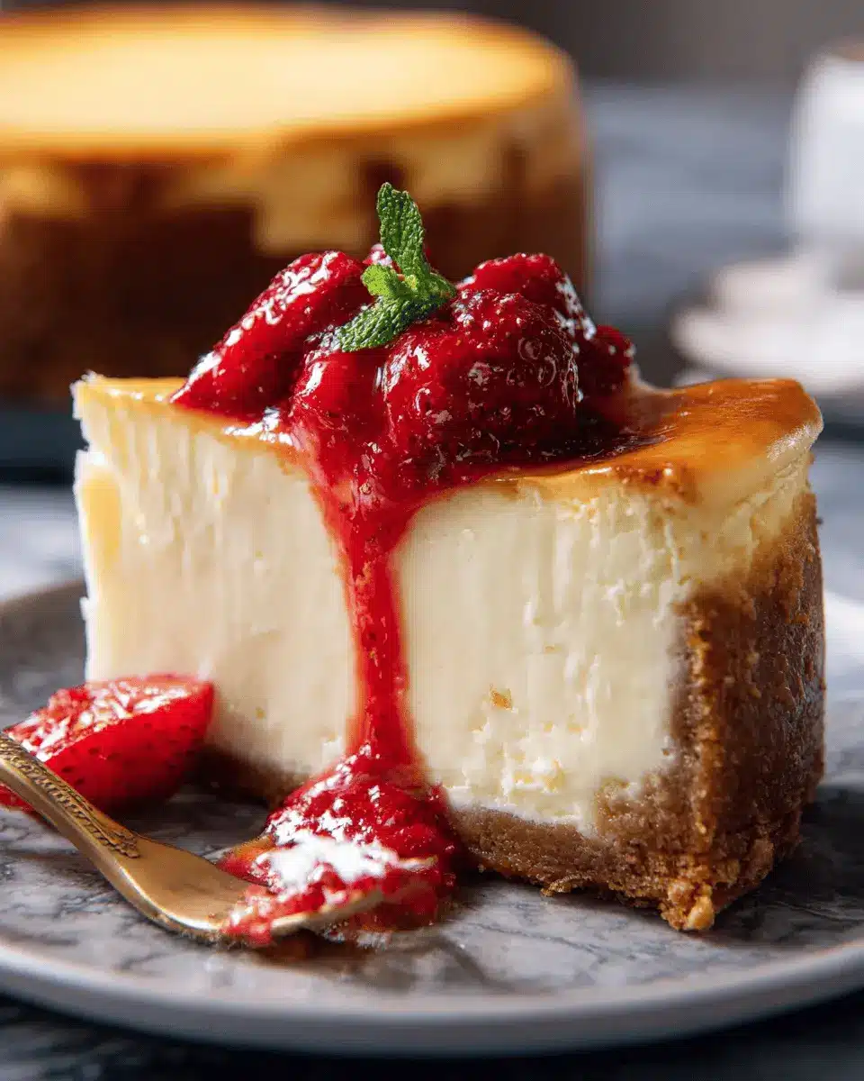 Elevate your New York cheesecake by serving it with a vibrant fruit compote. You can choose fruits like strawberries, blueberries, or raspberries—each brings a burst of flavor that perfectly complements the creamy richness of the cheesecake. Simply simmer your chosen fruit with a splash of lemon juice and a bit of sugar until it thickens. This simple addition not only enhances the dessert visually but also adds a refreshing contrast that balances out the flavors.