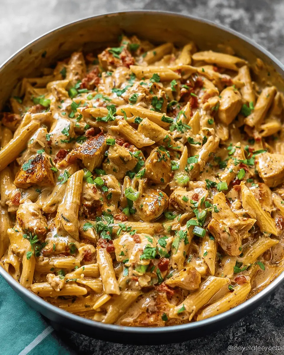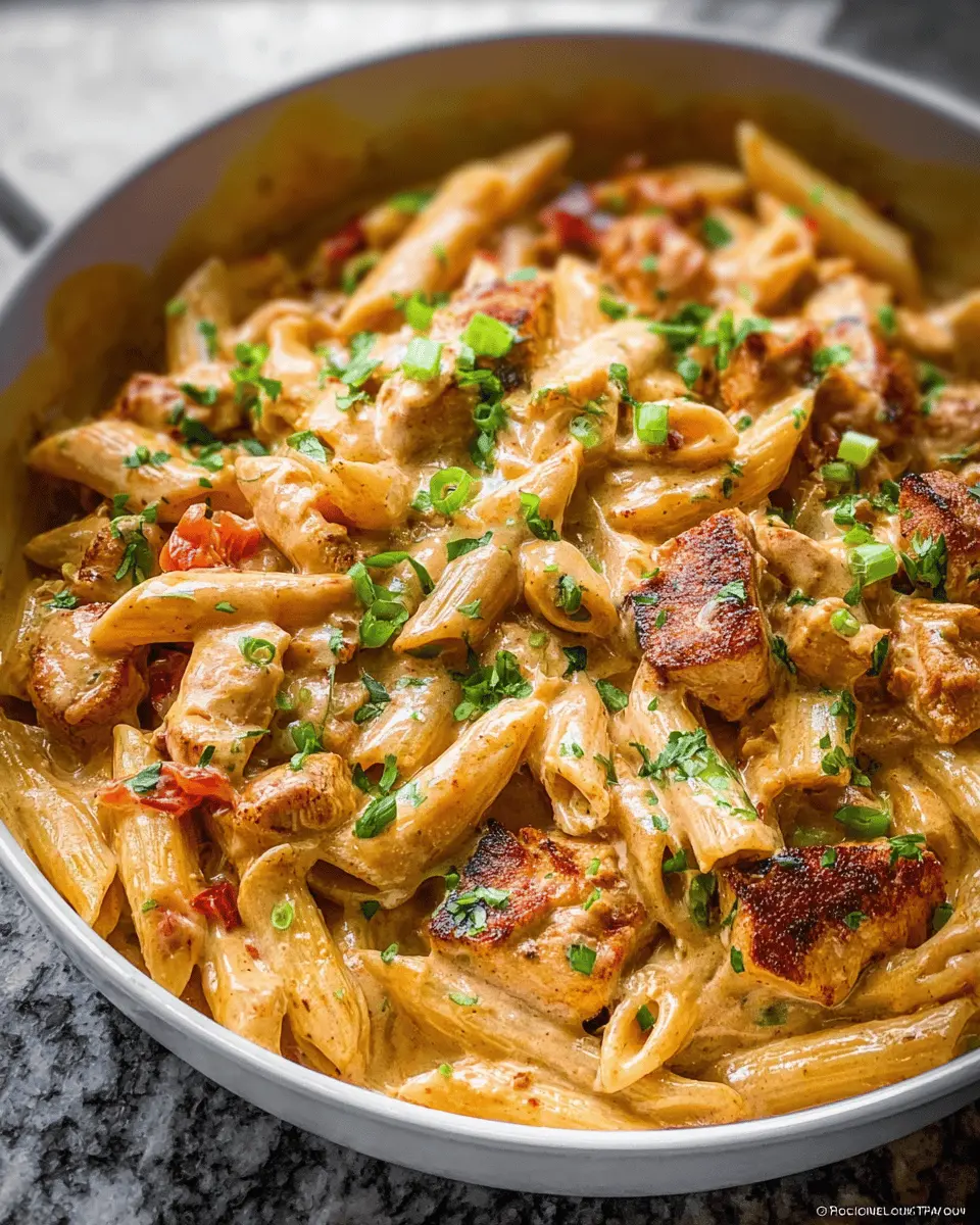Garnish your dish with fresh herbs like parsley or additional sliced green onions for a colorful finish. A sprinkle of grated Parmesan cheese adds a cheesy depth too. For those wanting a little kick, a dash of hot sauce or some chopped jalapeños can elevate your Cajun chicken pasta experience. Enjoy your meal!