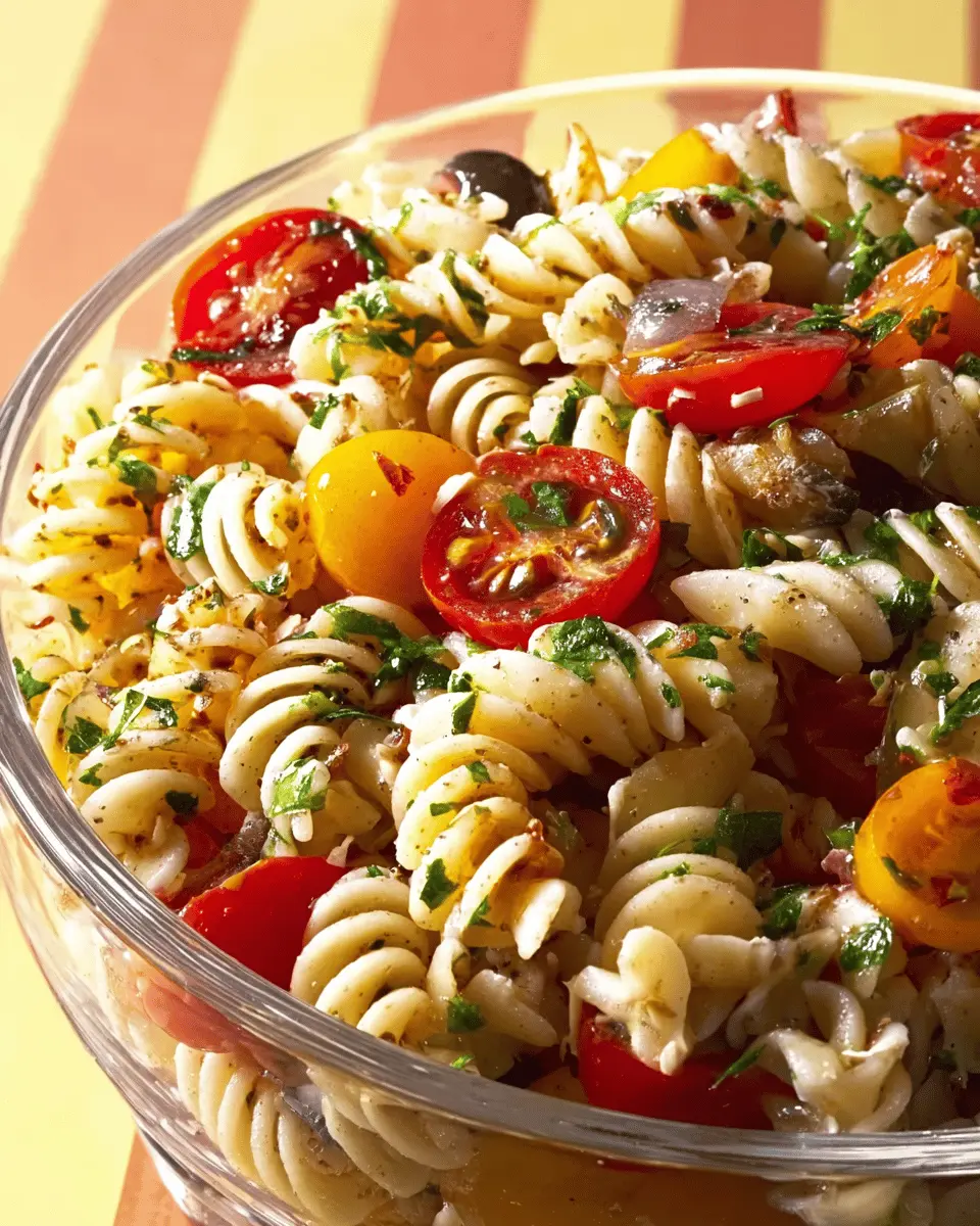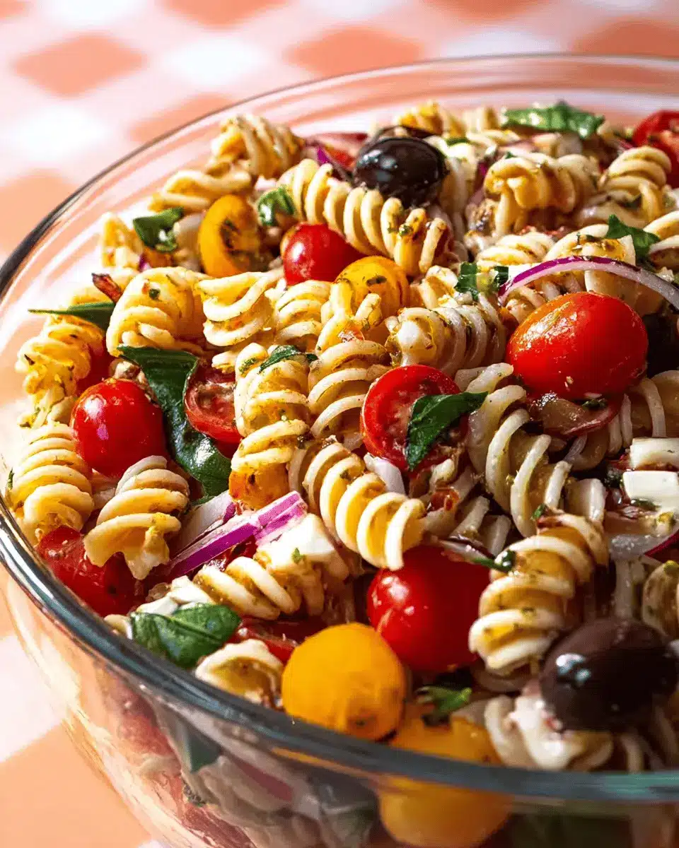 Preparing this vibrant Pasta Salad takes just 20 minutes. It’s the perfect quick dish for a busy weeknight or a sunny weekend gathering.