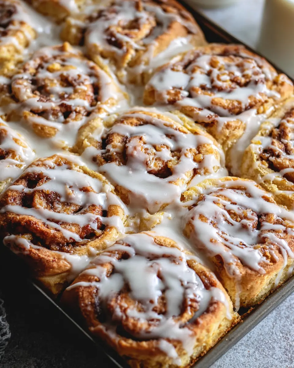 While those rolls are baking, prepare a simple icing. Whisk together 1 cup powdered sugar, 2 tablespoons of milk, and 1 teaspoon vanilla until smooth. Once the cinnamon rolls have cooled slightly, drizzle this sweet icing over the top.