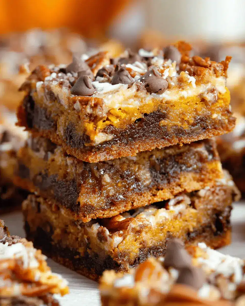 If you’re looking for a delightful homemade treat that perfectly captures the essence of fall, Pumpkin Magic Bars are the answer! These bars are not just a sweet indulgence; they’re a symphony of flavors and textures, with layers of graham cracker crust, creamy pumpkin filling, crunchy pecans, chocolate chips, and delightful shredded coconut. The best part? They’re easy to make and incredibly satisfying.